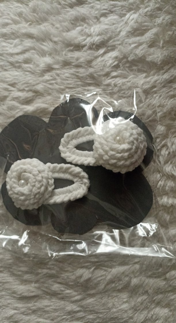 Beyaz Örgü Nakışlı Çocuk Toka Seti