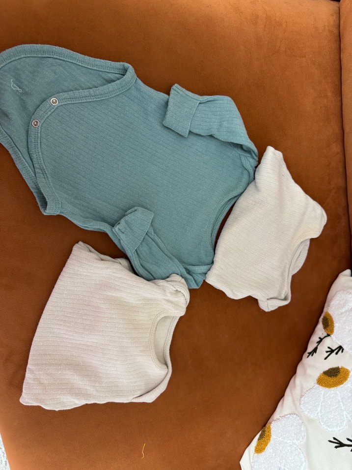 Pamuklu, uzun kollu ve yuvarlak yakalı bebek body. Pastel beyaz renkte, örgü dokulu ve desensiz sade tasarım sunar. 4 adet olarak satışa koyuyorum 0-3 ay uyumlu hepsi set olarak