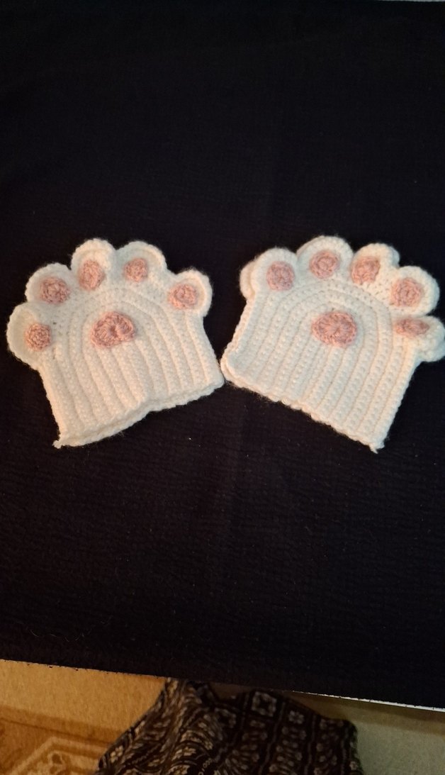 Pastel pembe detaylı beyaz örgü, patili kadın eldiveni, rahat ve retro tarzda.