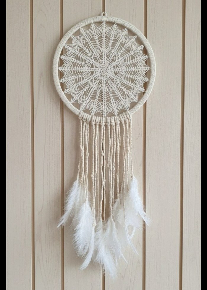 İnce desenlere sahip beyaz örgü rüya kapanı, sarkan püskülleriyle ev dekorasyonu için uygundur. set halinde 3 lü de alabilirsiniz tek de alabilirsiniz tek fiyatı 200 3 lü fiyat 500