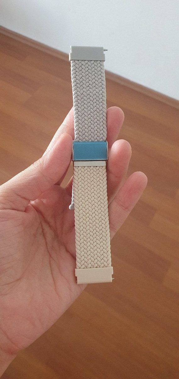 Minimalist tarzda, metal tokalı beyaz örgü saat kayışı. Sokak modasına uygun, hafif ve şık.