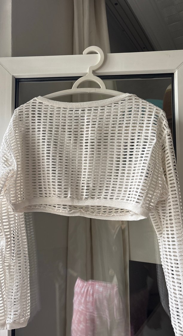 Bu beyaz, örgü yapılı uzun kollu bluz, tekne yaka ve vücuda oturan kesimiyle minimalist sokak tarzını yansıtıyor. Hafif ve desensiz yapısı dış mekanlar için uygun.