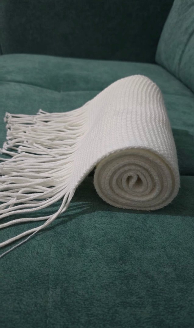 Beyaz Örgü Yün Kadın Şal Atkı