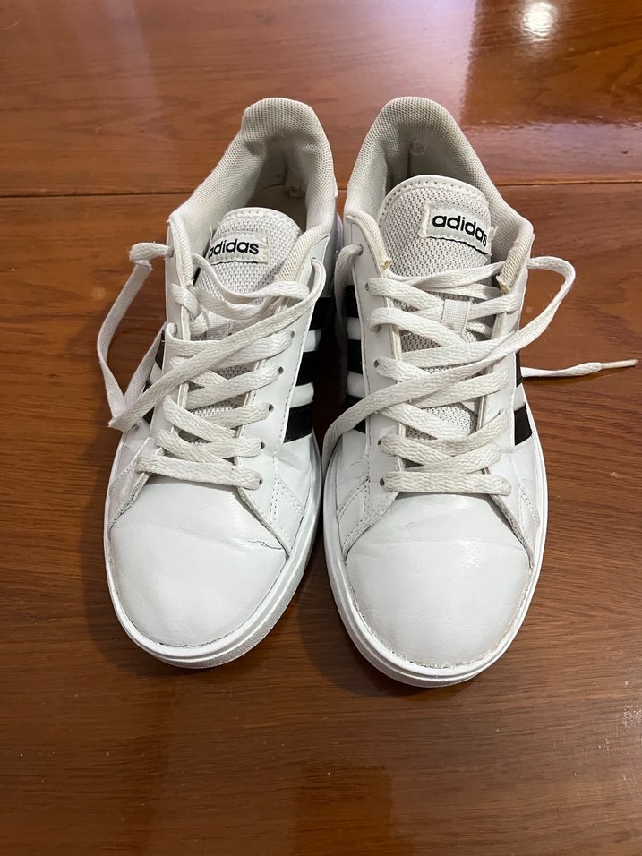 Beyaz Adidas bağcıklı kadın spor ayakkabısı, lastik tabanlı . Spor ve sokak stiline uygun, ürün orijinal adidas mağazasından alındı çok temiz iç topuk kısmında kusurları var yanlarda kusurları var birtanesininde içinde keçesinin ince bezi yok fotolarda belirgin şekilde çektim görebilirsiniz ihtiyaç fazlası