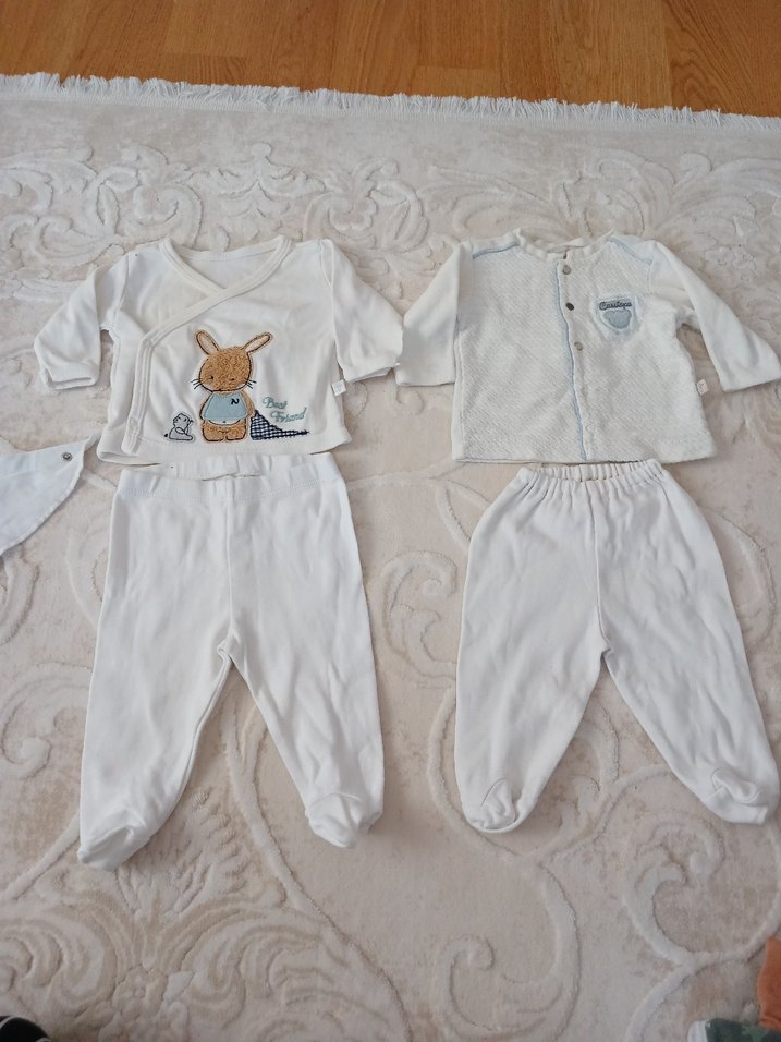 Pamuklu, uzun kollu, örme dokulu beyaz bebek erkek takımı, crew yaka ve pastel renkli, sokak stili için uygun.