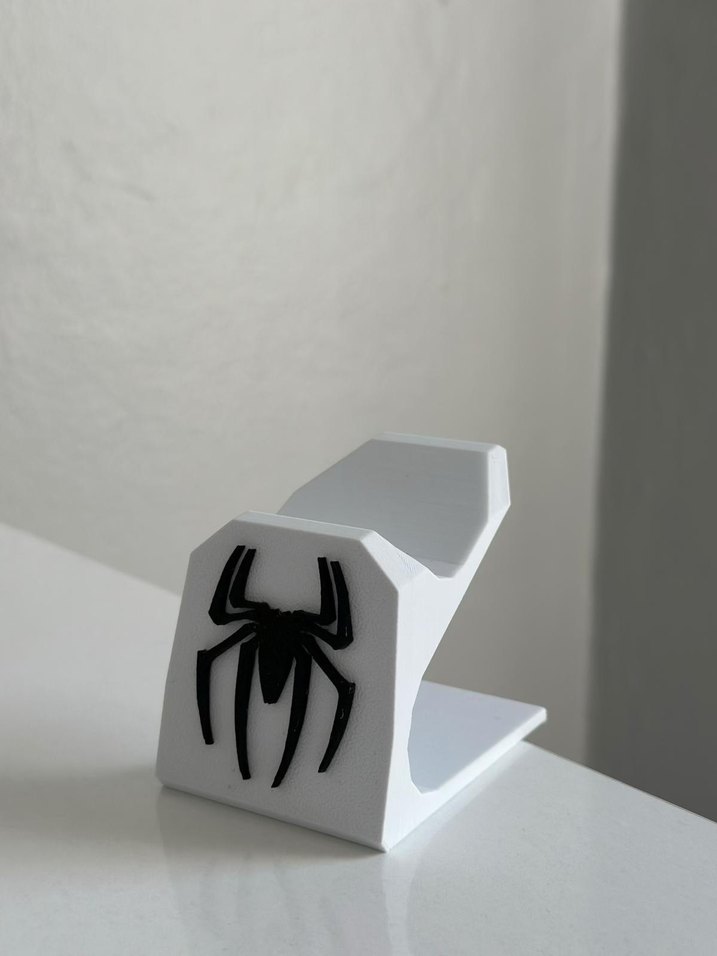 Siyah örümcek desenli beyaz PlayStation tutucu, cihazınız için sağlam bir destek sağlar. ️