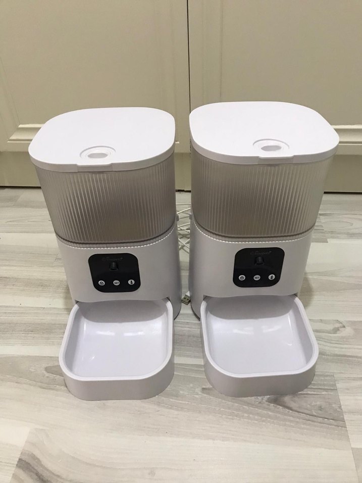 Dijital kontrol paneli ve çıkarılabilir mama tepsisi olan beyaz otomatik evcil hayvan mama kabı. Porsiyon kontrolü için uygundur. Hiç bir sorunu yok elimde 2 tane var ilan tek ürün için