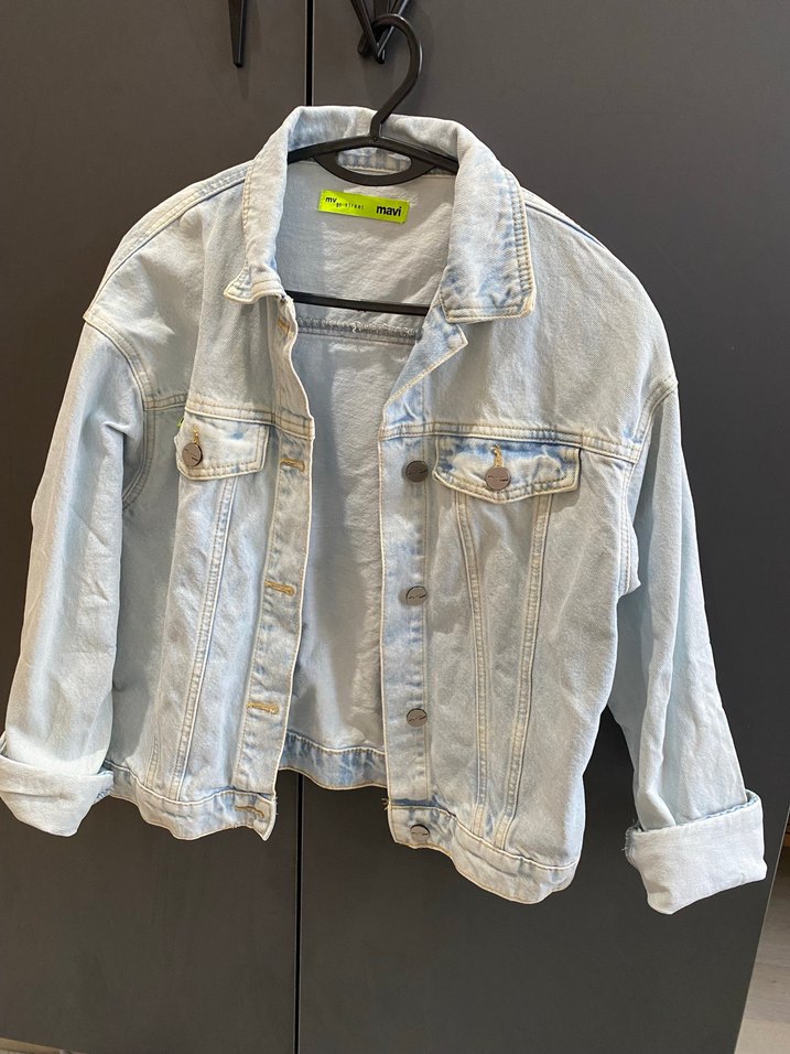 Beyaz renkli, oversize kesim denim ceket, düğmeli ve notched yaka detaylıdır. Uzun kollu, midi boyda ve günlük kullanıma uygundur.