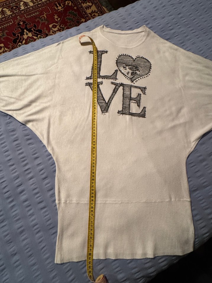 Beyaz renk etıketsız love logolu resımde goruldugu gıbı bel yan kısmında kucuk bır delık mevcut ancak genıs dokumlu oldugu ıcın gorulmuyor yarasa yarım kol