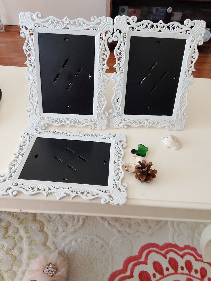 Üzerinde ince oymalar bulunan beyaz dekoratif çerçeve seti, fotoğraf veya sanat eserleri için uygundur. Arkası koyu renklidir. ️ resimdeki gibi 3 cü tek fiyat
