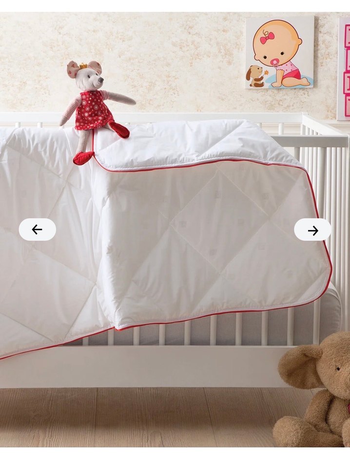 Birkaç kez kullanıldı Kenarları kırmızı şeritli, yumuşak pamuktan yapılmış beyaz bebek yorganı. Bebekler için hafif sıcaklık sağlar. ️