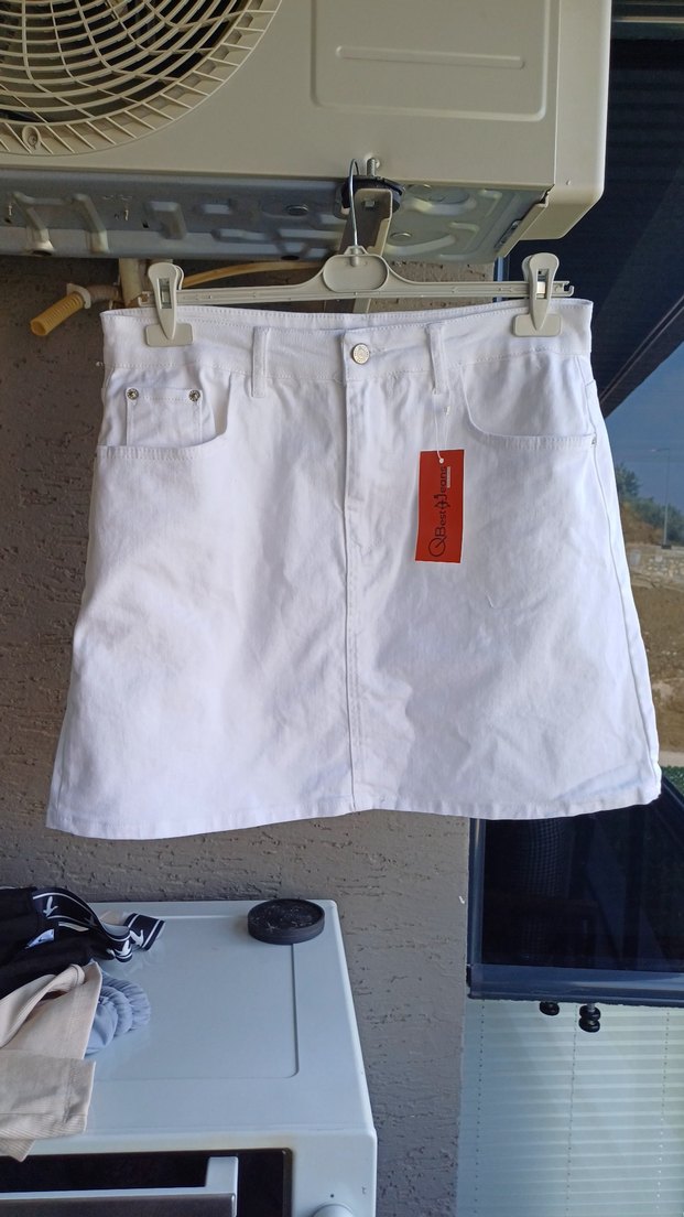 Beyaz Pamuk Mini Etek Rahat Kesim