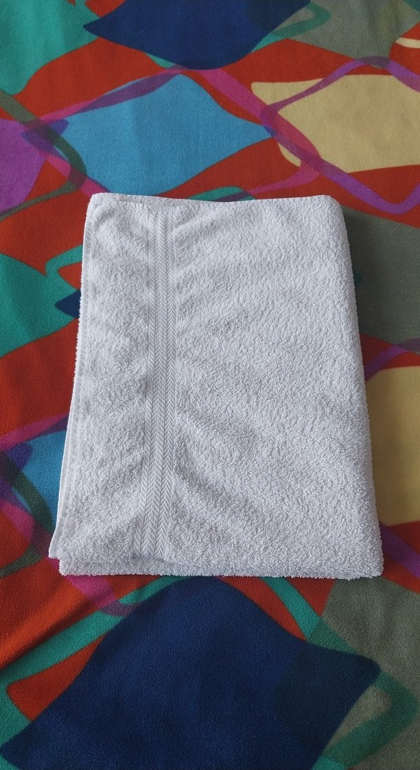 Yumuşak ve emici kumaştan yapılmış beyaz, desensiz havlu. Canlı renkli bir zeminde yer almaktadır. ölçüler fotoğraflarda mevcuttur yırtık Sökük Yanık herhangi bir defosu yoktur beyaz pamuklu banyo havlusu marka temsilidir