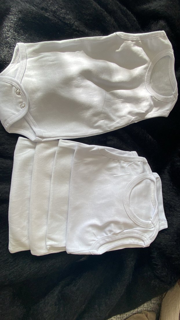 Beyaz renkli, pamuklu kumaştan yapılmış kolsuz bebek body. Yuvarlak yaka ve rahat kesimiyle günlük kullanıma uygundur. ❗️Ürün hiç kullanılmadı ❗️Hiçbir deforme yırtk vs. Yoktur ❗️Beyaz renk %100 pamuk kumaş ❗️6-9 ay için uygundur ❗️Paketiyle beraber gönderim sağlanacaktır ÜRÜN İÇERİĞİ: 5 adet penye pamuklu kolsuz bebek zıbın ❗️ürün her iki cinsiyete de olur Trndyl uygulamasından alındı
