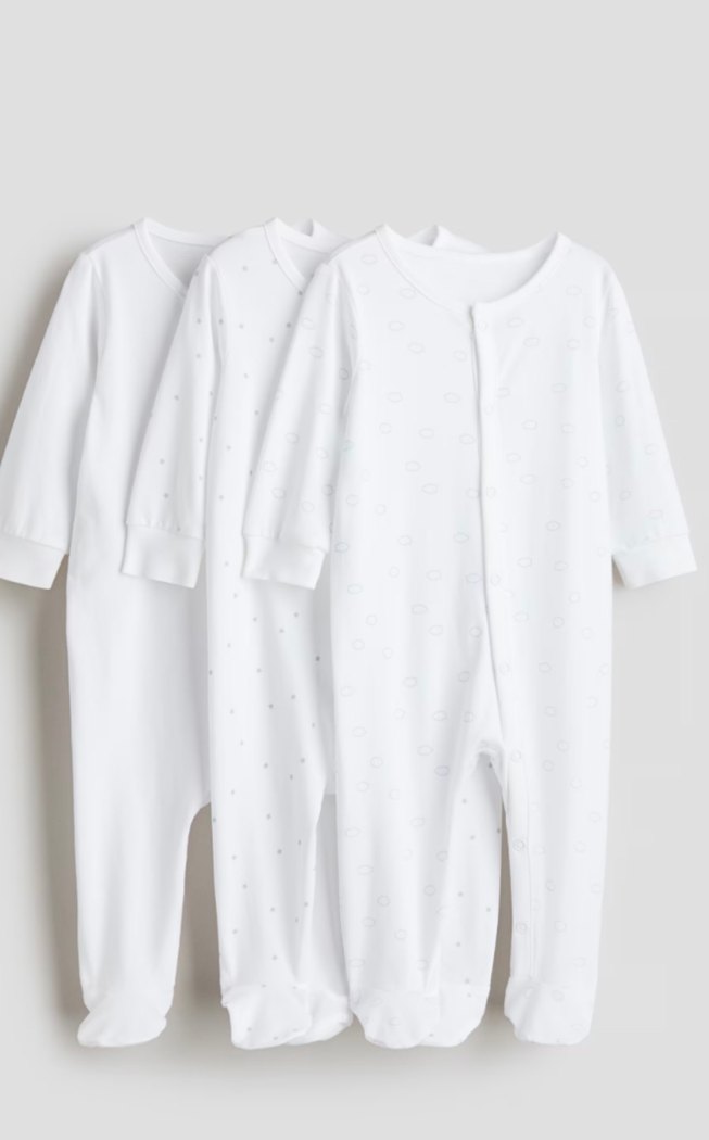 Üçlü beyaz pamuklu uzun kollu bebek tulum seti, sade ve normcore tarzda, rahat ve şık bir seçimdir. 6-9 ay 74 cm. Oğlum birden büyüdüğü için hiç kullanılmadı kendinden desenli yıldız ve bulut deseni vardır bir tanesi de düz beyaz