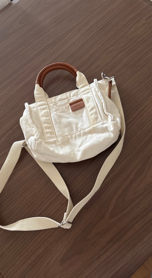 Beyaz pamuklu kumaştan yapılmış, kahverengi saplı ve baskılı detaylara sahip bohem tarzda kadın çantası. Çıkarılabilir askısıyla rahat ve şık kullanıma uygundur.