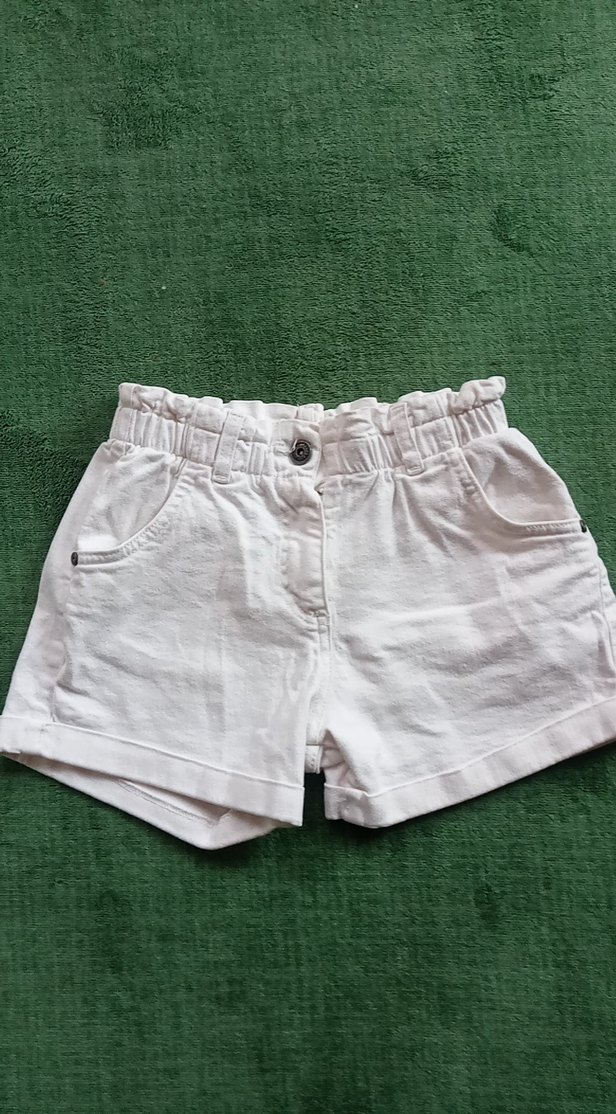 Beyaz pamuklu kız şortu, son fotoğrafta belli belirsiz leke vardır.Etiketindeki yaşa küçük gelir.