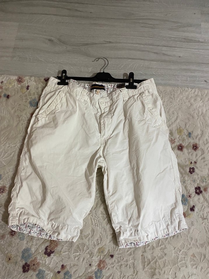 Beyaz pamuklu mini şort, bol kesim ve kemerli bel detayıyla rahat ve günlük sokak stili sunar. Desensiz ve kısa boyda.