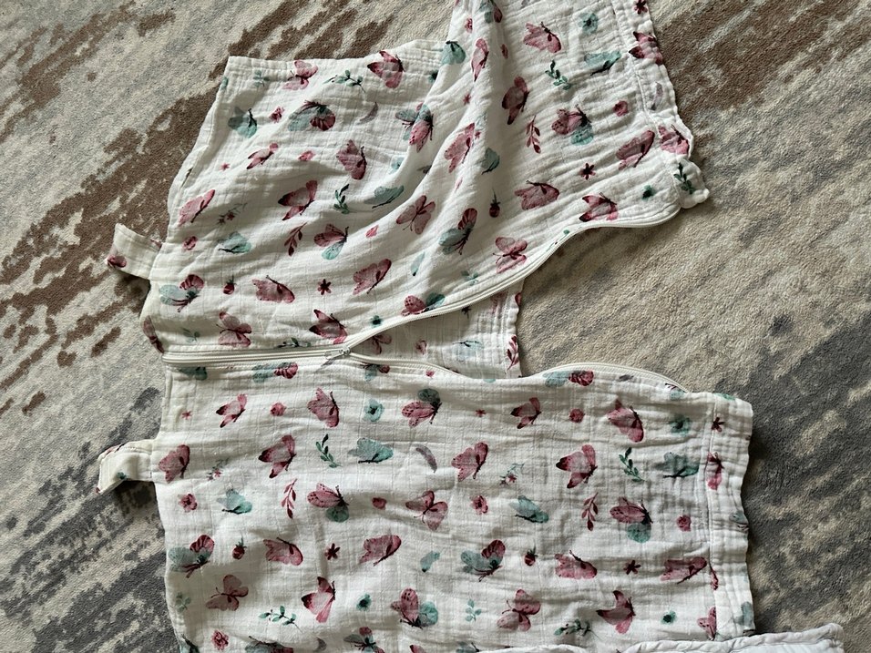 Beyaz zemin üzerine pastel tonlarda çiçek desenli, pamuklu yumuşak çocuk puset ortusu