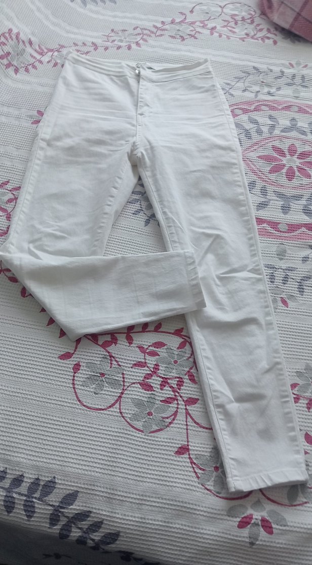 Pamuklu kumaştan üretilmiş beyaz, dar kesim kadın jean. Normal midi boyda, elastik bel detayıyla rahatlık sağlar, desen içermeyen sade tasarım. 34.36 uyumludur bilekte boyu ince kot temiz