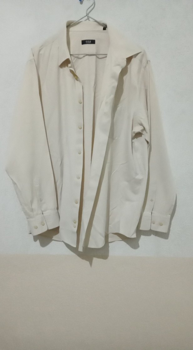 Beyaz pamuklu erkek gömlek, uzun kollu ve düğmeli. Notch yaka ve normal midi boyu ile minimalist ve sade bir tarz sunar. Ofis için uygundur.