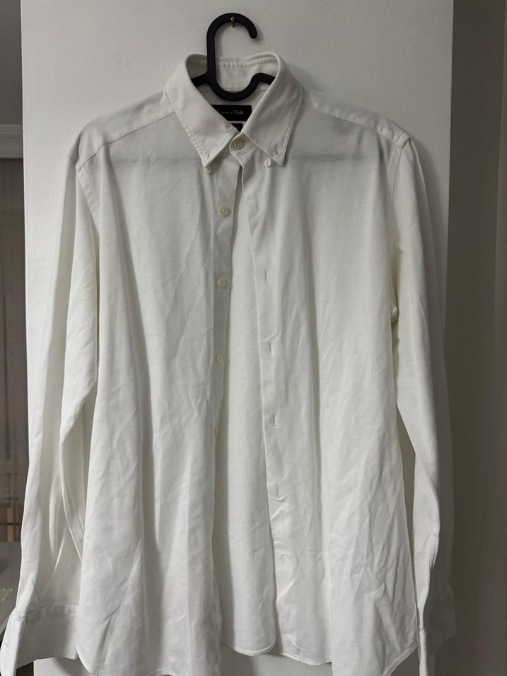 Pamuklu, düğmeli beyaz erkek gömlek, uzun kollu ve yakalı, normal boy ve regular fit ile ofis kullanımı için uygundur.