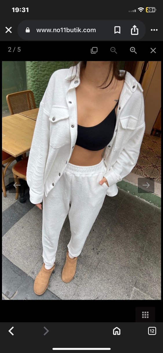 Beyaz pamuklu gömlek pantolon takım. Beli lastikli m bedendir ben s bedenim biraz salaş dursun diye m aldım 2 defa kullandım çok şık ve rahat bi takım
