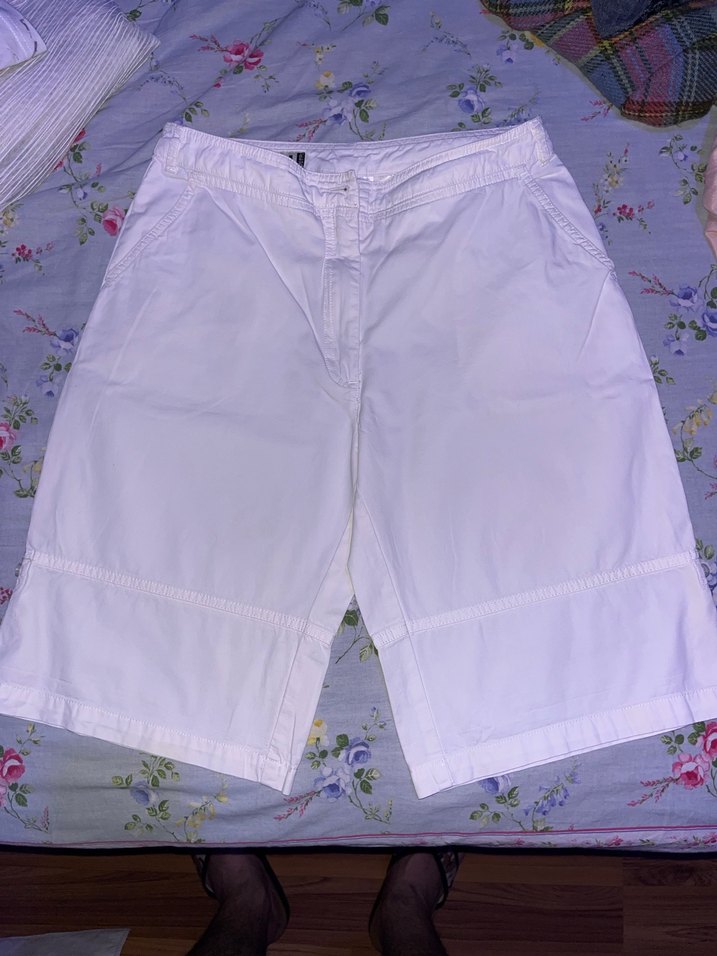 Beyaz pamuklu kumaştan, bol kesim ve kısa boyda kadın bermuda şort. Günlük kullanım ve rahat sokak stiline uygun, zahmetsiz şıklık sunar.