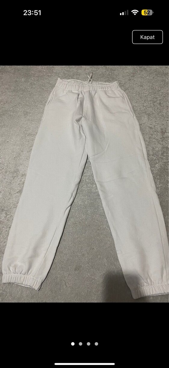 Beyaz pamuklu, bol kesim, lastikli paçalarla günlük rahat ve şık kadın eşofman altı. İçi Şardonlu olduğu için kalın sıcak tutuyor. Sayılı kullanıldı temiz Marka temsili