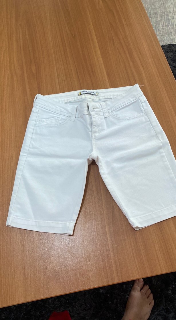 Pamuklu, beyaz, mini uzunlukta, düz desenli ve rahat kesimli, günlük kullanıma uygun kadın bermuda şort.