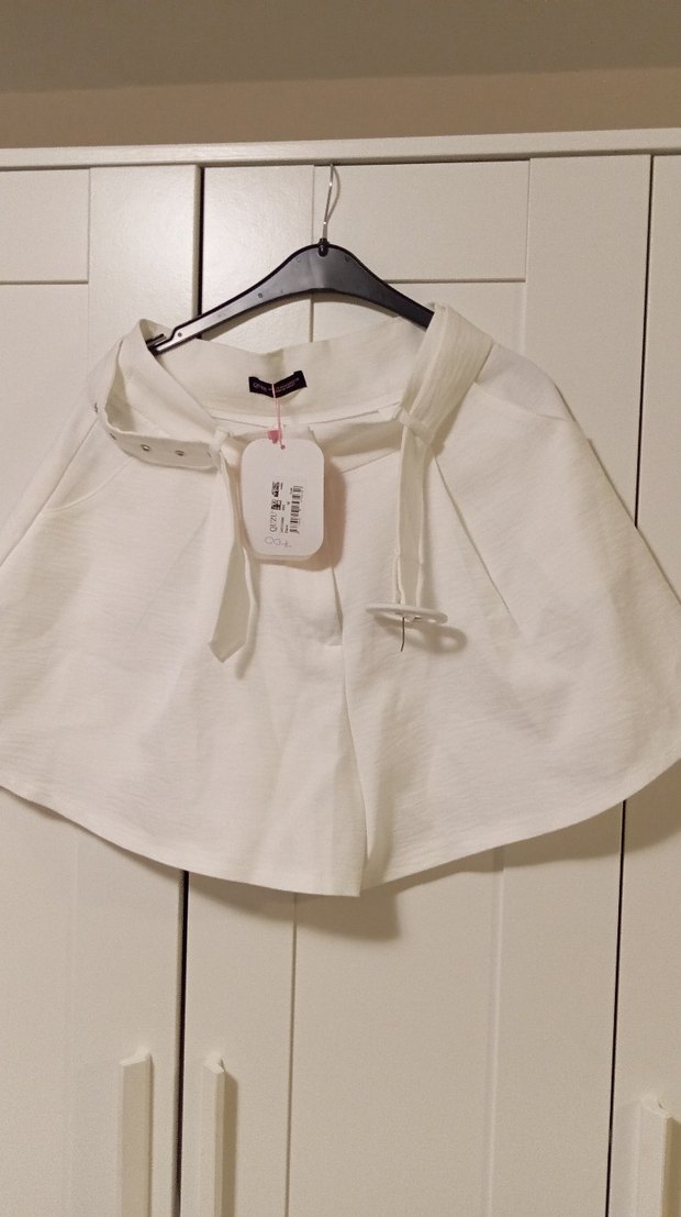Beyaz pamuklu kumaştan, kemerli ve bol kesim kız eteği. Düz ve pastel renkli, rahat ve trend sokak stili için uygundur.