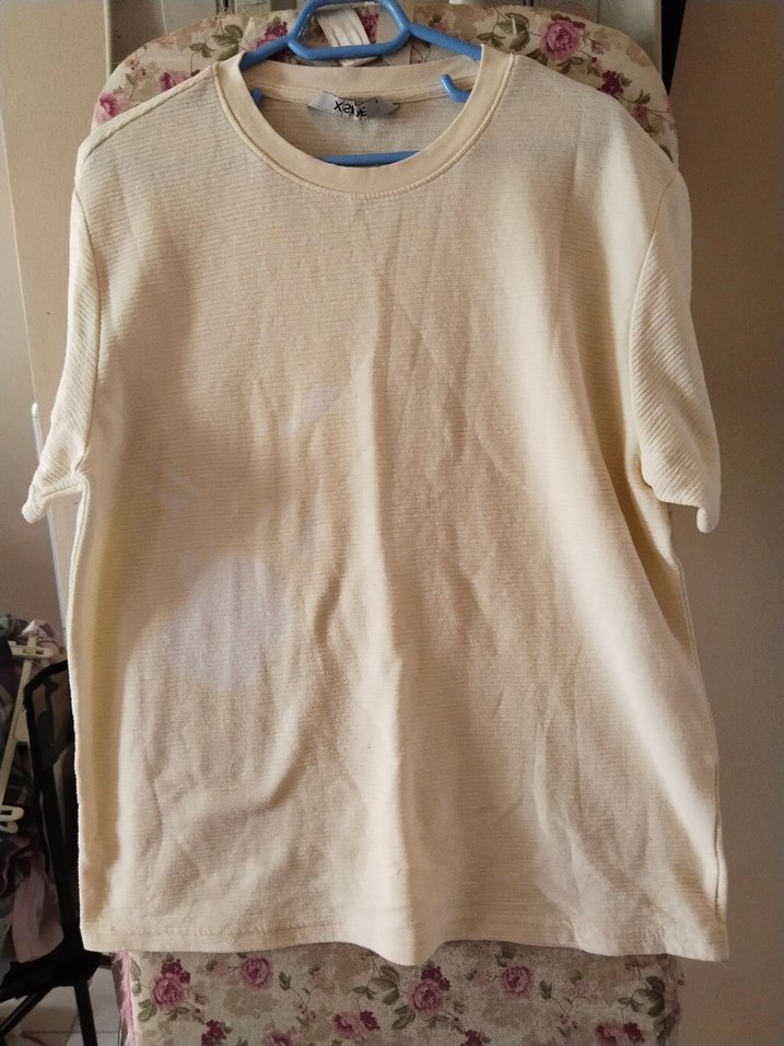 Beyaz pamuklu, kısa kollu, yuvarlak yakalı, bol kesim tişörtü. Minimalist ve rahat bir günlük stil sunar. göğüs 55 cm boy 65 cm #zara#mang9#xside#bulux#gomlek#tisort#fanila#iclik