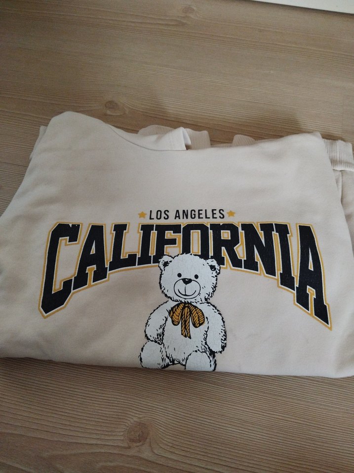 Pamuklu kumaştan üretilmiş, bol kesim, uzun kollu ve bisiklet yaka kız çocuk tişörtü. Pastel beyaz renkte, üzerinde ayıcık ve 'LOS ANGELES CALIFORNIA' baskısı bulunur.