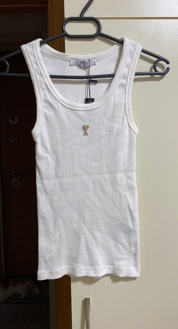 Pamuklu, kolsuz ve beyaz renkli bu dar kesim atlet, yuvarlak yaka ve önünde küçük şık detay ile günlük rahat stil için uygun.