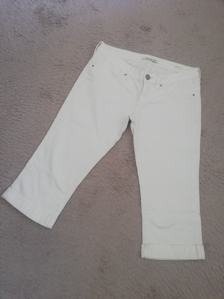 Mavi Jeans Co Kadın Beyaz pamuklu kumaş, diz altı şort. Outdoor kullanıma uygun. Beli 40 cm boyu 71 cm. Paça 19 cm.