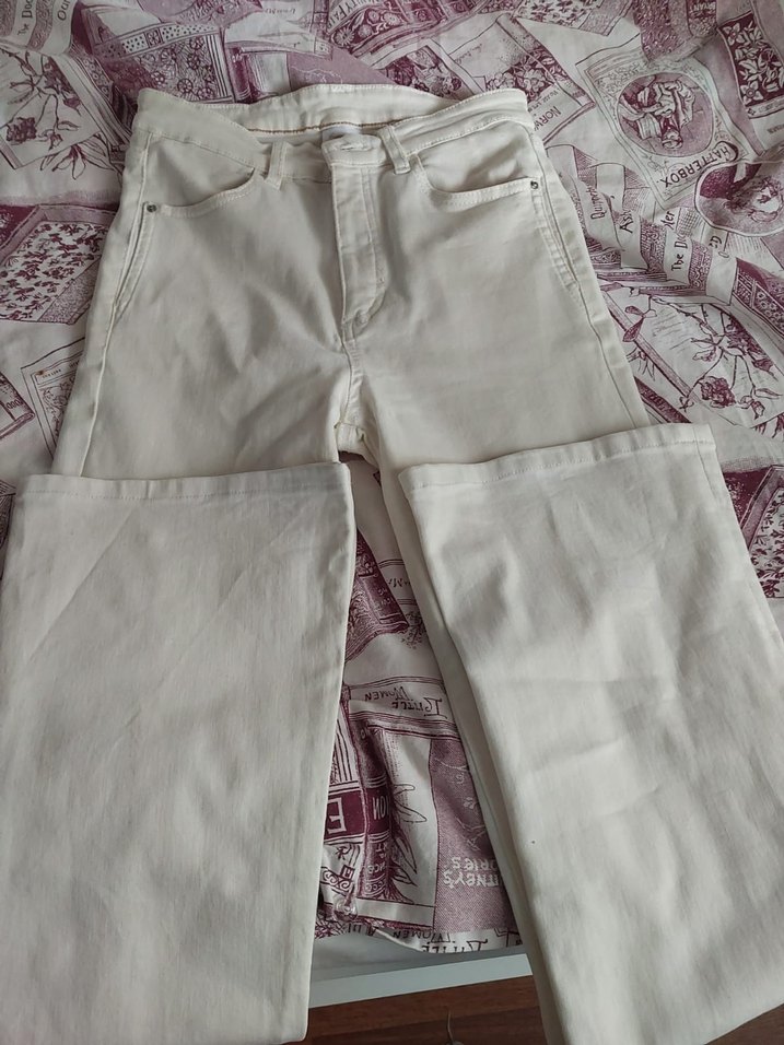 Beyaz pamuklu kumaştan, midi boy ve regular fit kesime sahip pantolon. Rahat ve şık, günlük kullanıma uygun.