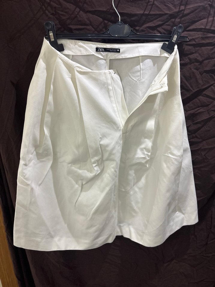 Beyaz pamuklu mini Bermuda şort, rahat kesimiyle minimalist sokak stiline uygun. Ofis için zahmetsiz şıklık sunar.