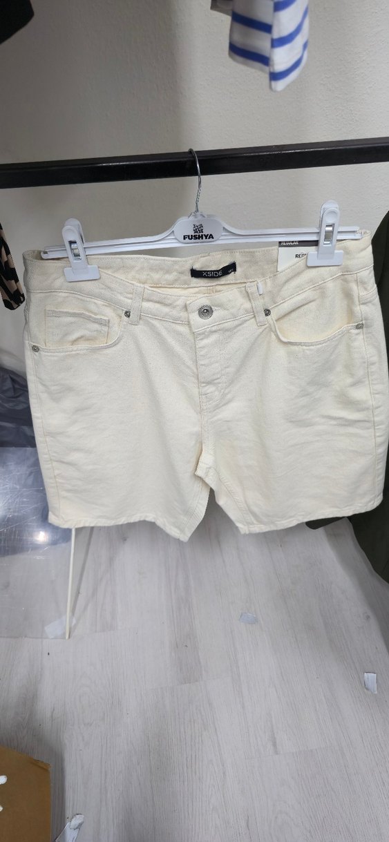 Beyaz pamuklu mini denim şort, rahat bir kesime sahip. Günlük kullanım için hafif ve desensiz, salaş ve şık stil sunar.