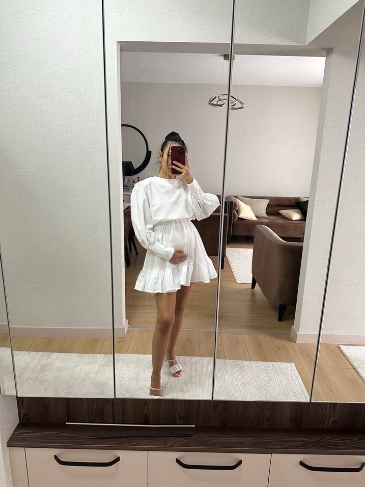 Beyaz Pamuklu Mini Elbise, Uzun Kollu, Rahat Kesim