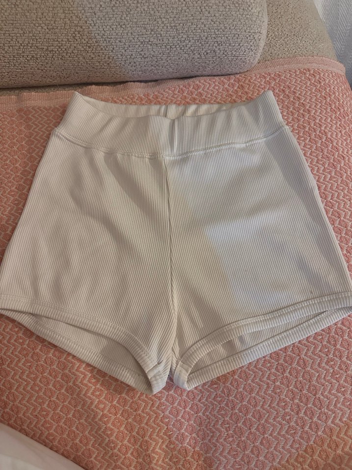 beyaz renkli, kısa ve mini kesim.Düz ve rahat bir tarz sunar, dış mekan kullanımı için uygundur.