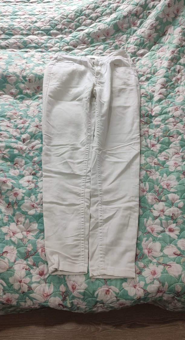 Fitted kesim, beyaz pamuklu, normal boy midi pantolon, fermuarlı detaylara sahip, gündelik kullanıma uygun.