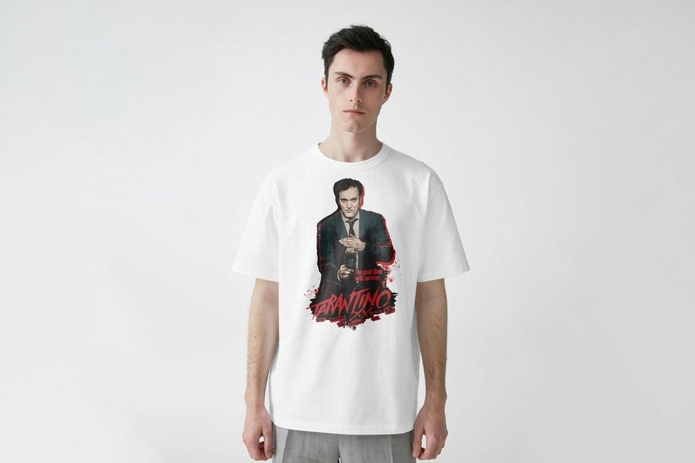 Beyaz Pamuklu Quentin Tarantino Baskılı Tişört