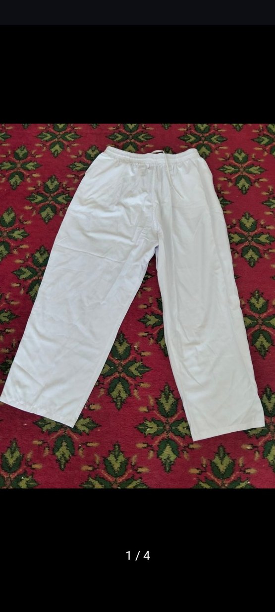 Beyaz pamuklu, rahat kesim erkek şalvar pantolon. Günlük rahat kullanım için uygun, sade ve konforlu bir stil sunar.