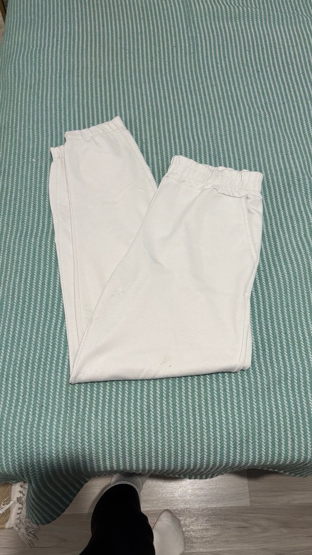 Beyaz pamuklu, rahat kesim ve normal midi boyda olan bu kadın eşofmanı, günlük sokak stiline uyum sağlar ve zahmetsiz şıklık sunar.
