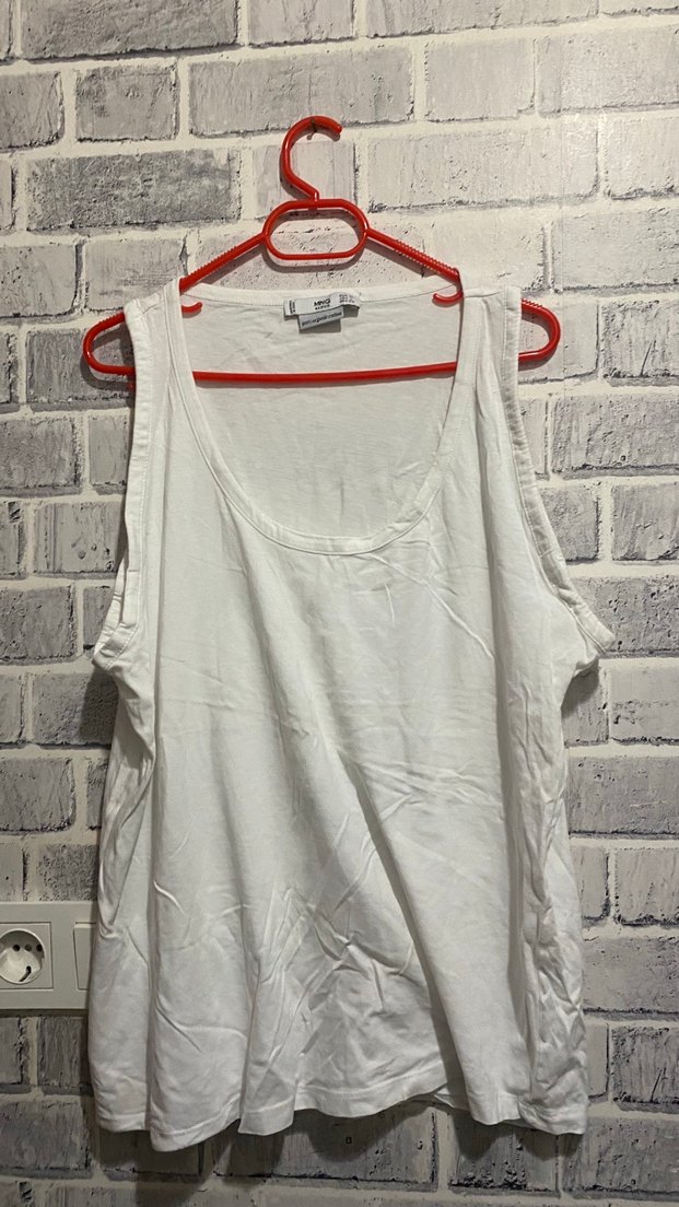 Salaş kesim, beyaz pamuklu, yuvarlak yaka kadın atlet, günlük kullanıma uygun minimal ve rahat bir şıklık sunar.
