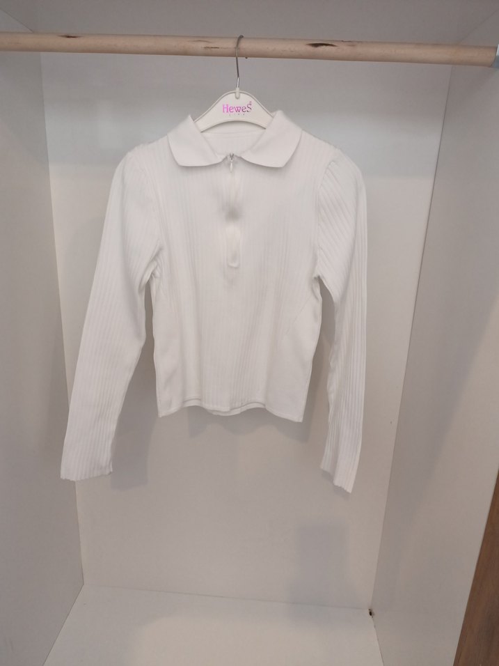 Pamuklu kumaştan yapılmış, düğmeli, yakalı ve uzun kollu, beyaz renkli, vücuda oturan bayan bluzu. Rahat ve şık sokak stili için uygundur.