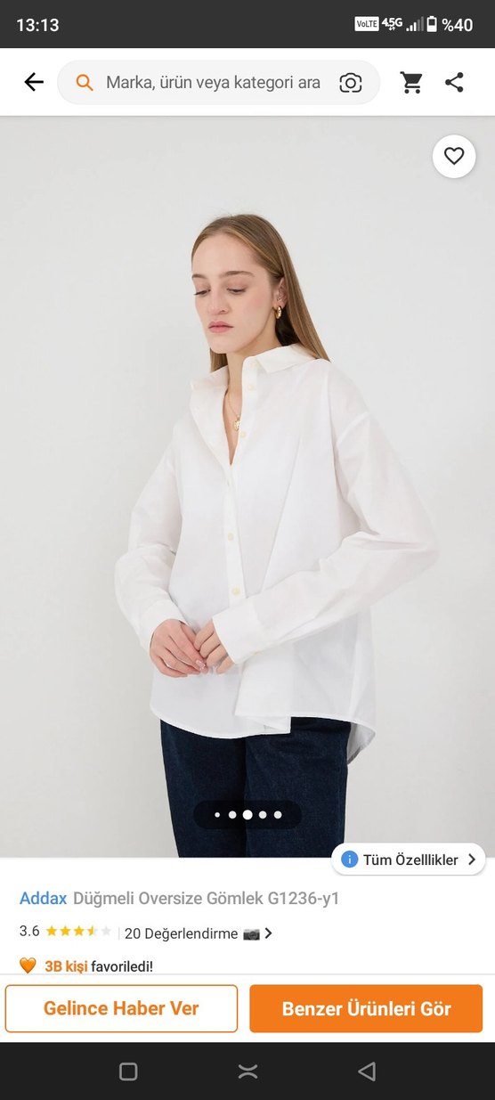 Beyaz pamuklu gömlek, yakalı ve uzun kolludur. Rahat, bol kesimi ve midi boyuyla ofis için uygun, desensiz ve şık bir tasarıma sahiptir. 1 kere giydim sadece 450 TL'ye aldım 200 TL'ye satıyorum