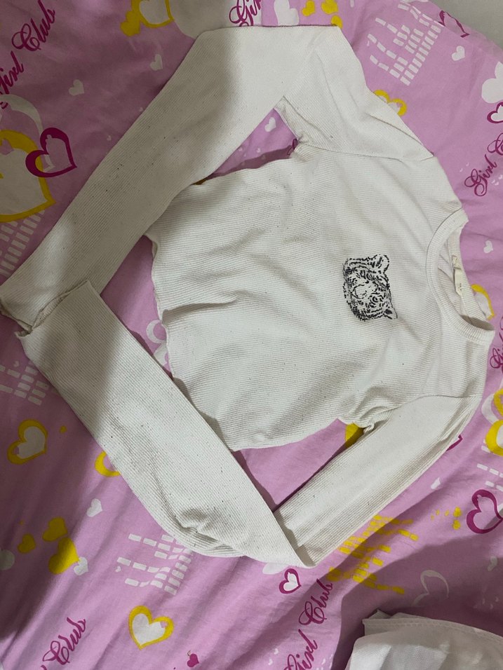 Beyaz Pamuklu Uzun Kollu Kız Tişörtü