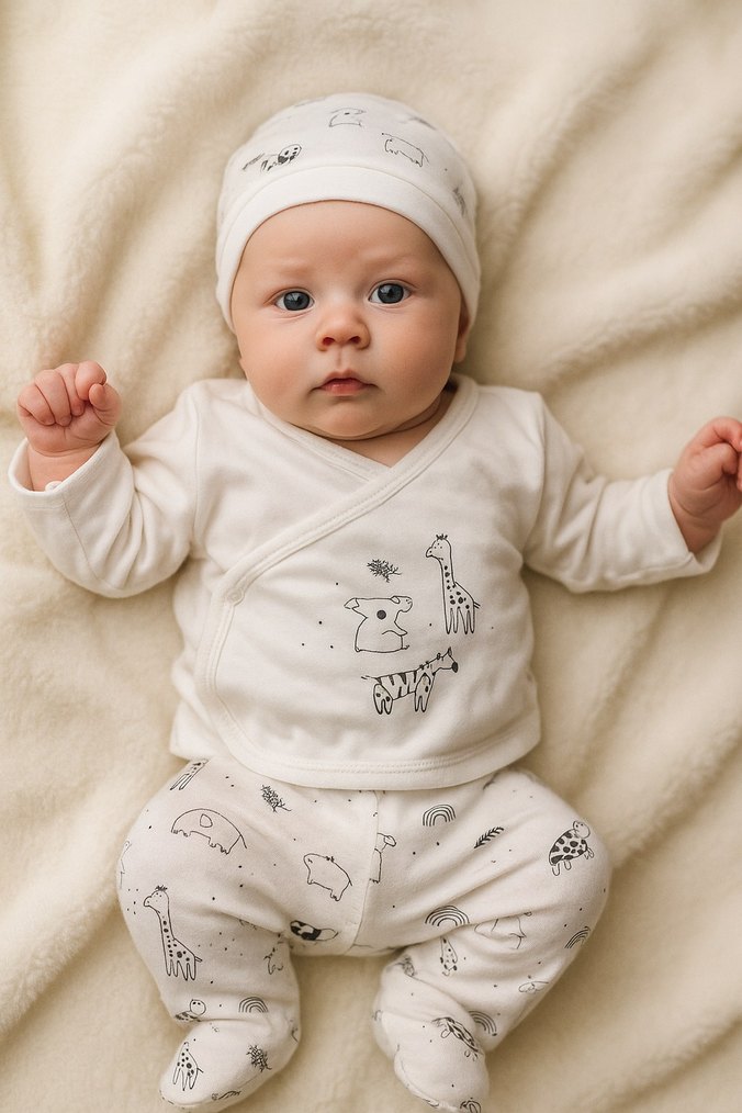 Uzun kollu, pamuklu beyaz bebek takımı. 3 aylık hellobaby zıbın takımı bebek alt üst takım
