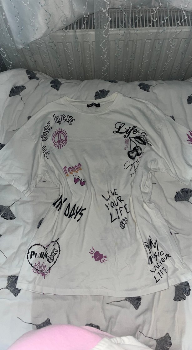 Beyaz Pamuklu yarım Kollu Baskılı Tişört